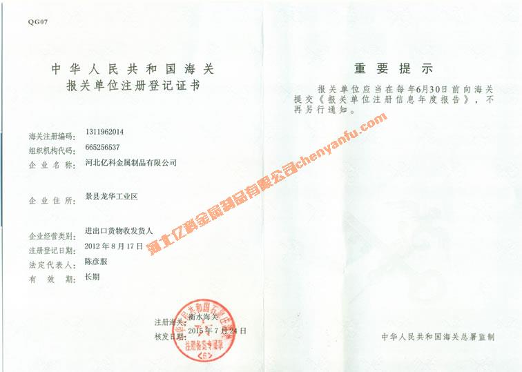 海关报关单位注册登记证